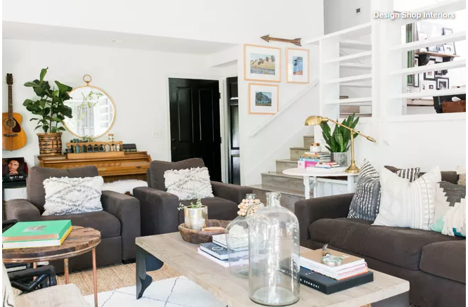 Pillows are a great place to start, especially if you’re decorating a living room on a budget. Look to other accessories and furnishings to add new materials to the palette, even in small doses.