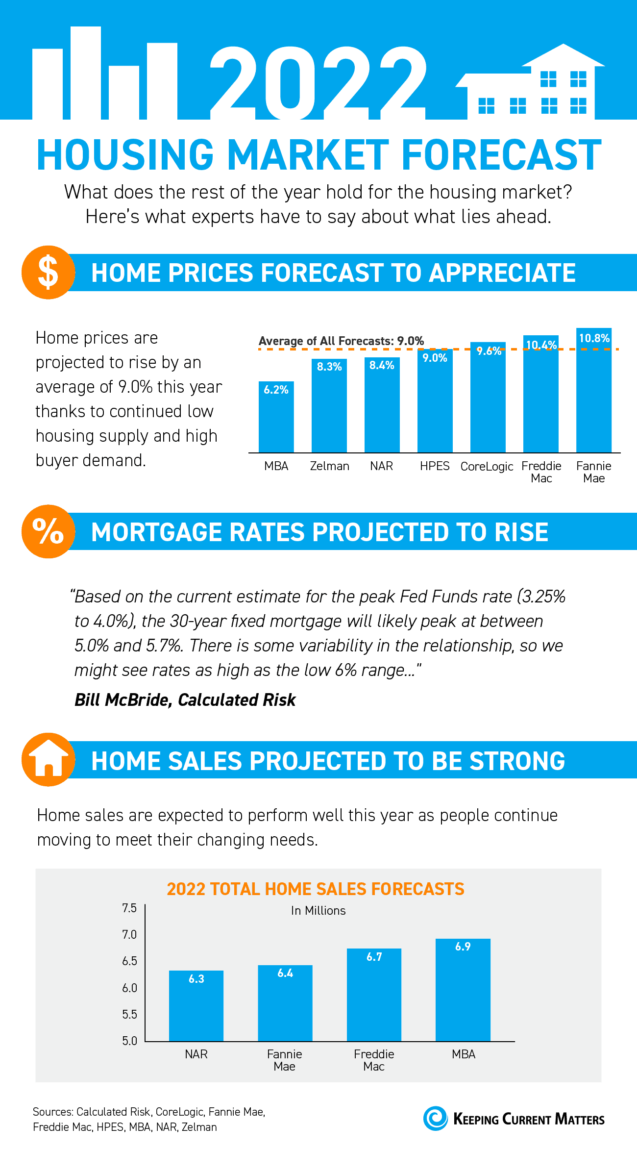- Home prices are projected to rise and so are mortgage rates. Experts are also forecasting another strong year for home sales as people move to meet their changing needs.